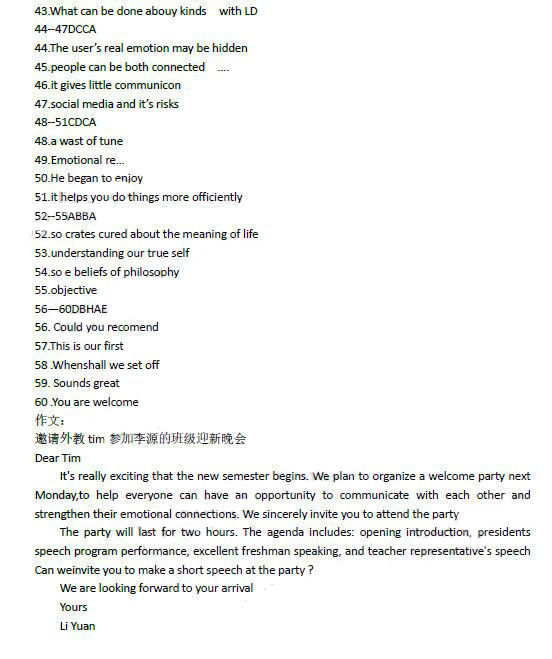 It's really exciting that the new semester begins. We plan to organize a welcome party nextMonday,to help everyone can have an opportunity to communicate with each other andstrengthen their emotional connections. We sincerely invite you to attend the party